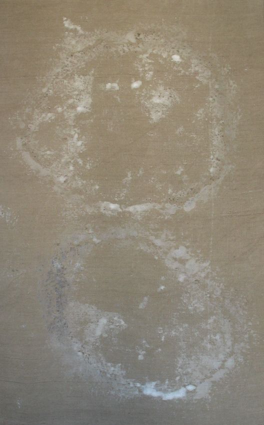 Bodenbild 4, 47.5 x 75cm, Dispersion, Öl, Graphit, Aquarell auf Textilgrund, 2007 |
