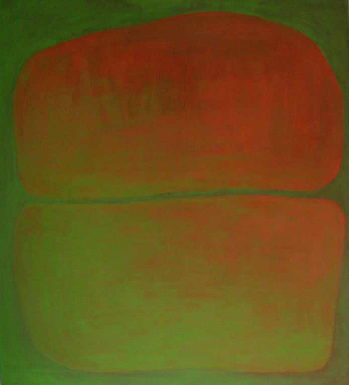 Rot+Grün. Schwebend, 95 x 104cm, Öl auf Leinwand, 2005